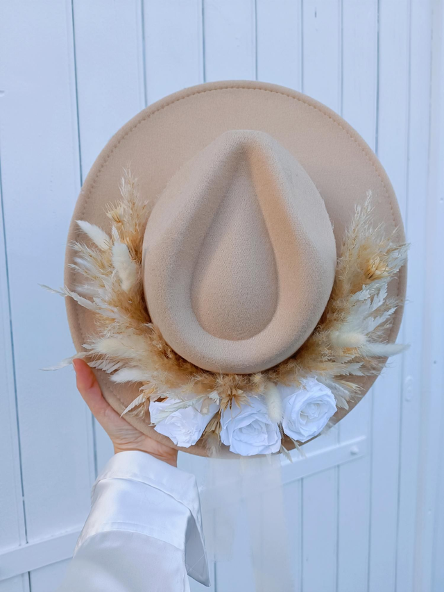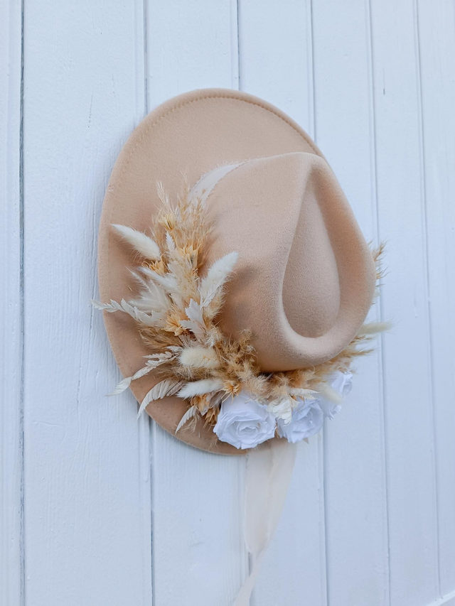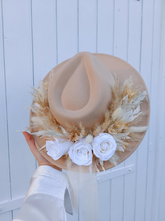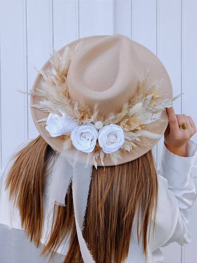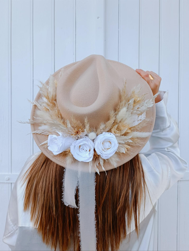Ce chapeau est parfait pour un mariage bohème ou champêtre, ou bien pour un événement, un anniversaire, un baptême, un enterrement de vie de jeune fille ou tout simplement pour vous faire plaisir !