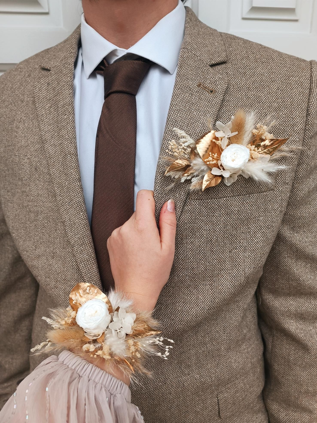 Les accessoires proposés en photos peuvent être personnalisés. Il n’est pas possible de les reproduire à l'identique. Les créations sont réalisées avec les fleurs disponibles.