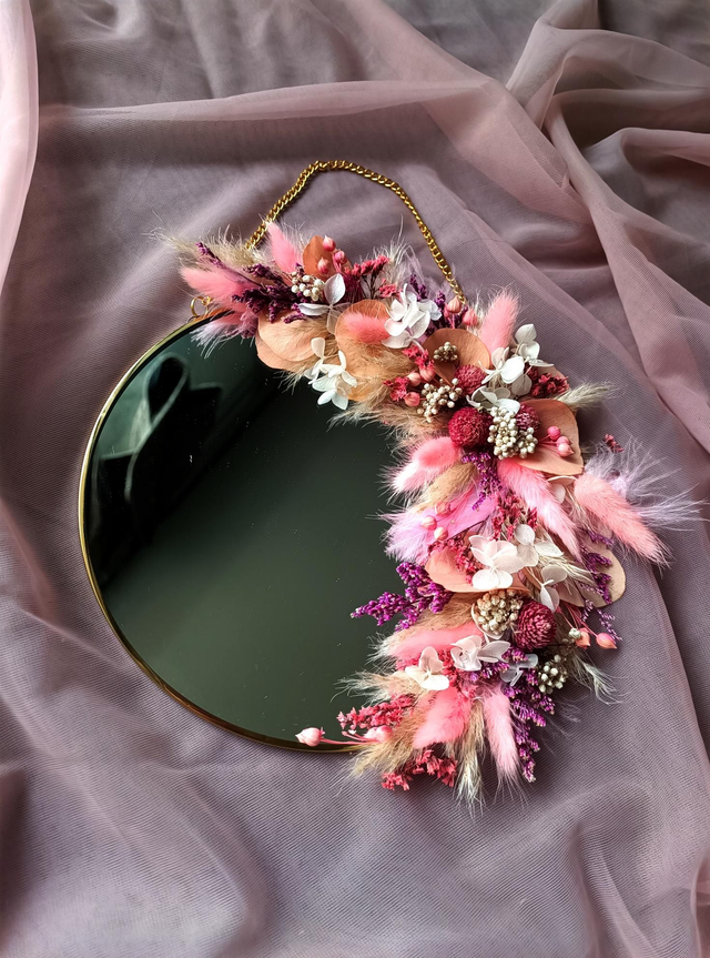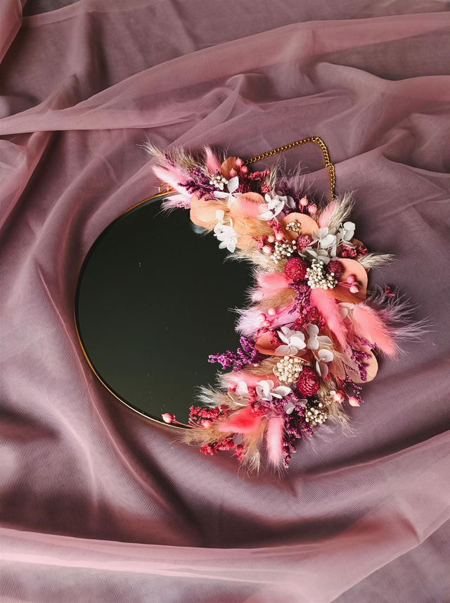 Les miroirs sont confectionnés en fleurs naturelles séchées et stabilisées.